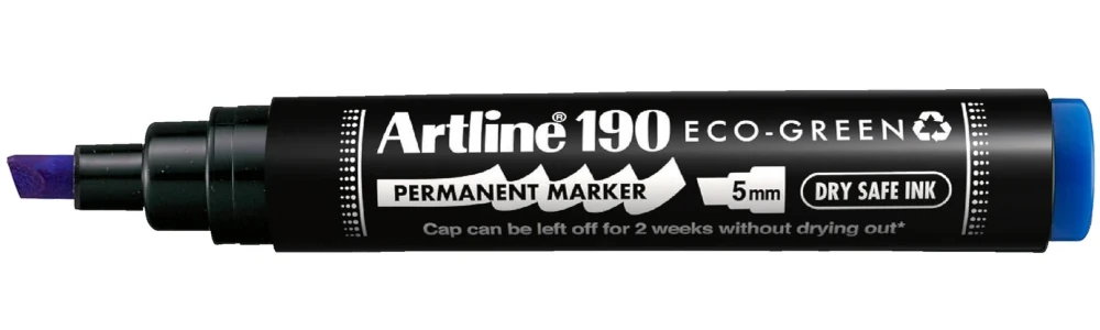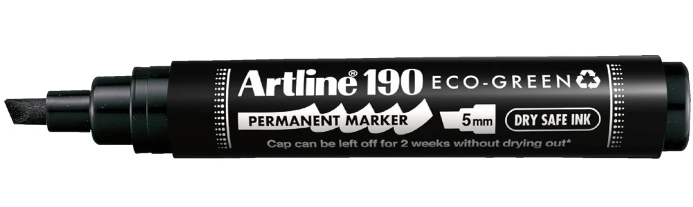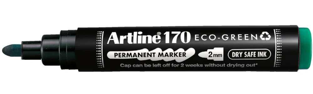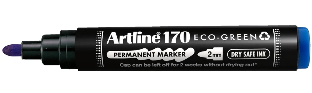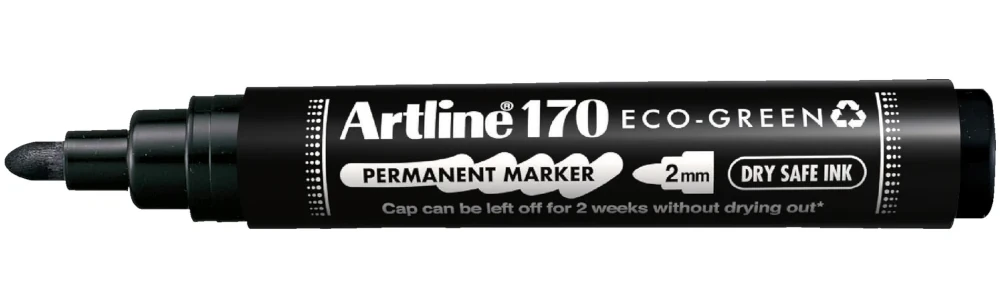 These Artline permanent markers are not only made from post-consumer recycled plastic, but can also be left with no cap on for up to 2 weeks without drying out. The soft membrane around the nib acts as a cap and only breaks when writing, enabling the ink to flow.