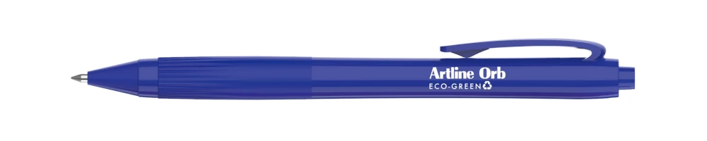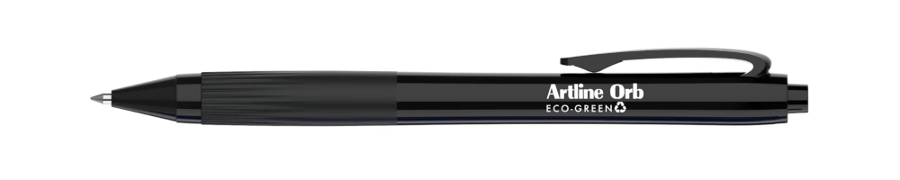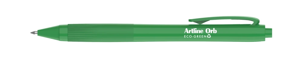 The Artline Orb Eco-Green is a ballpoint pen made from 58.4% post-consumer recycled plastic. Ideal for all general writing in the office, home or school, this pen offers a cushion grip, pocket clip, retractable nib and produces a super smooth 1mm writing width.