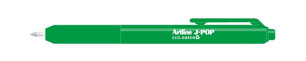 The Artline J-Pop Eco-Green is a gel pen made from 50.4% post-consumer recycled plastic. Ideal for all general writing in the office, home or school, this pen offers a cushion grip, pocket clip, retractable nib and produces a super smooth 0.7mm writing width.