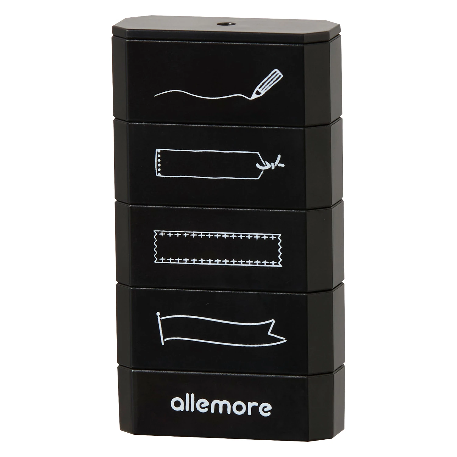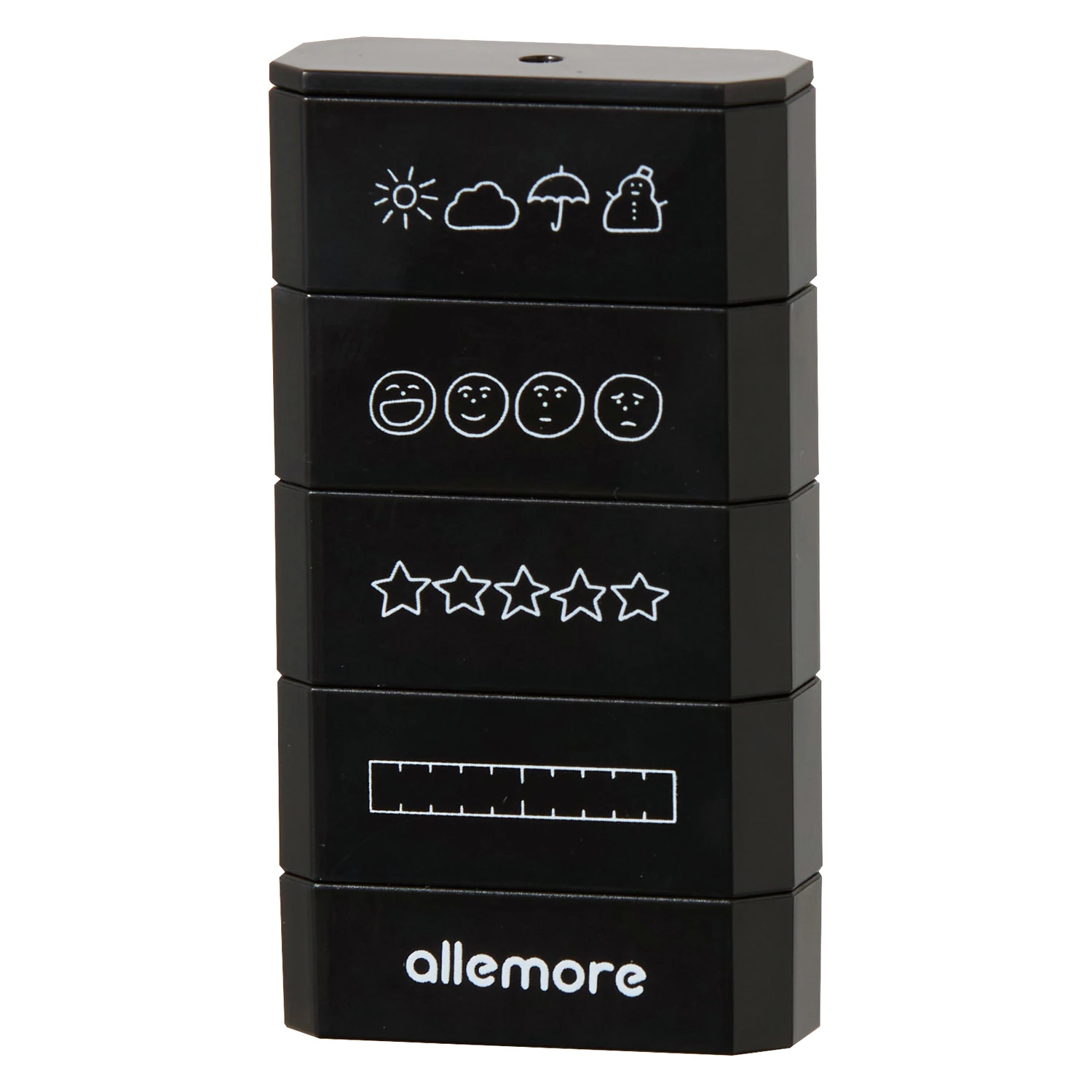 4 in 1 pre-inked stamp, ideal for journaling and scrapbooking. Stamp casing matches ink colour and comes with an additional refill ink.